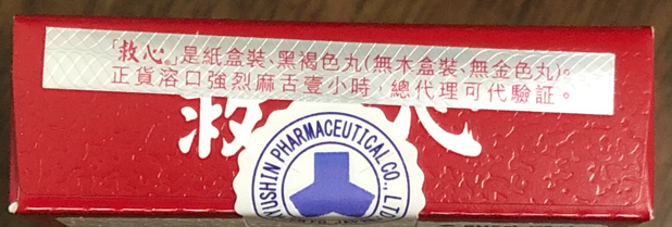 1、认明正货原装人字牌【救心】的防伪凹凸版纸盒包装。