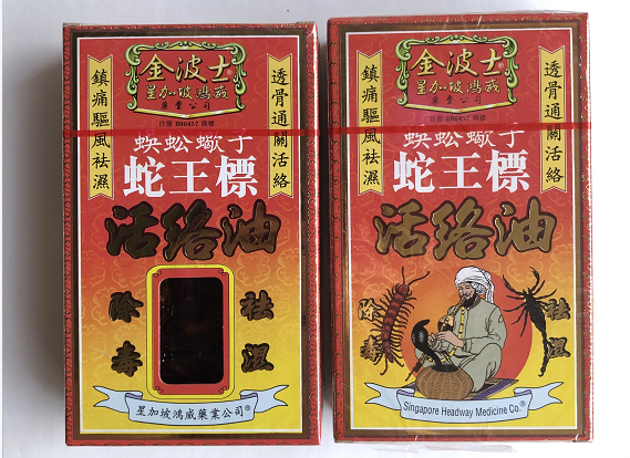 本金波士蜈蚣蠍子蛇王标活络油是采用祖传之有效秘方,天然之植物精华,先进科学方法,提炼成油,产品优良,气味芬芳,渗透力特强,能迅速直窜各病灶,务求使病患者能减轻痛苦,家居者能得以安心,正是一油在身,可保四季平安。
