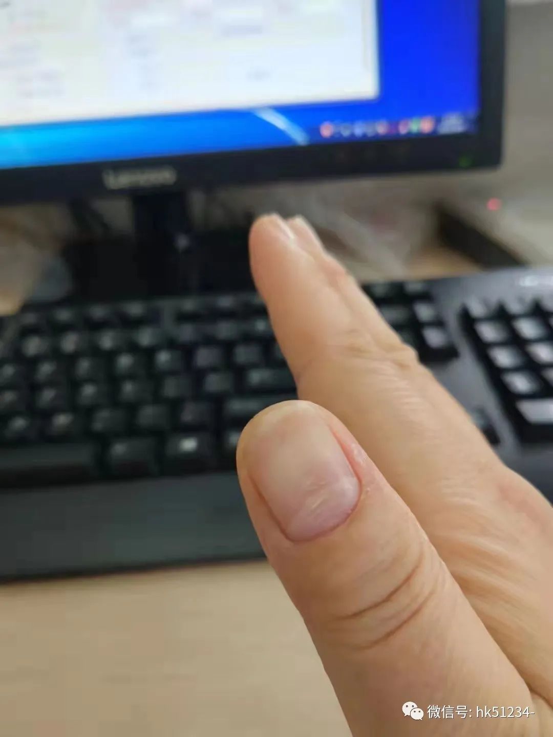 1、2021年3月11日,发过来几张照片,双手大拇指有灰指甲,右手几个手指皮肤有鳞屑。说有二十几年了,咨询我用什么药擦。(我推荐了真菌药水)